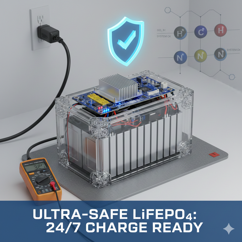 Kết luận: Luôn sạc pin LiFePO₄ là an toàn khi có BMS kiểm soát điện áp & nhiệt độ và điện áp nổi được cài đúng. Để tối đa tuổi thọ, tránh treo 100% SOC quá lâu khi không cần thiết; ưu tiên float 13,4–13,6V (12V) hoặc partial SOC cho EV/hàng hải.